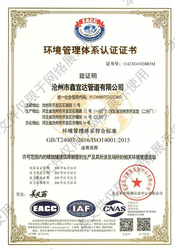 滄州市鑫宜達管道有限公司成立于2003年7月,坐落于滄州經濟開發(fā)區(qū),占地面積40萬平方米,注冊資金1.81億元,是集螺旋鋼管生產、防腐加工以及無縫鋼管、卷板、帶鋼等品類鋼材經營銷售于一體的工貿型企業(yè)。公司現(xiàn)有員工400多人,其中,中高級技術職稱的人員達120余名。 滄州市鑫宜達管道有限公司擁有9條螺旋鋼管生產線和3PE防腐生產線,可生產直徑219--3640mm,壁厚5.5--28mm,最高鋼級X100的各種規(guī)格防腐螺旋鋼管...